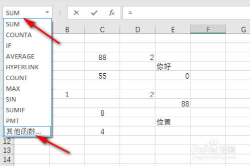 在左侧的函数中选择其他函数,如下图所示: