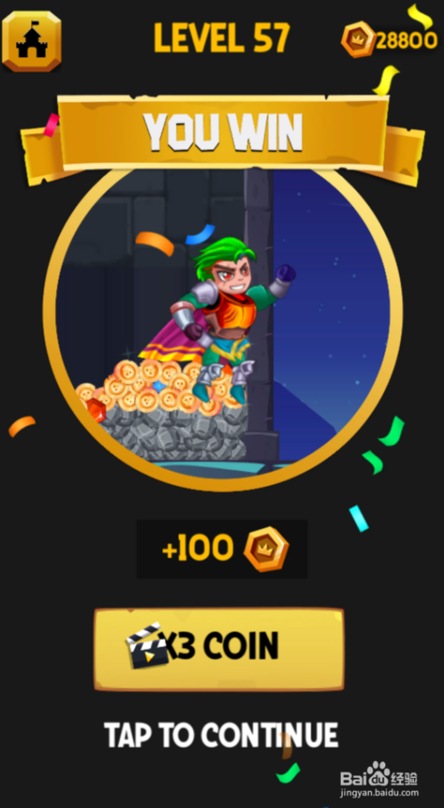 少年景功获得宝藏,弹出YOU WIN的通关动画,如图,这样就过关了。