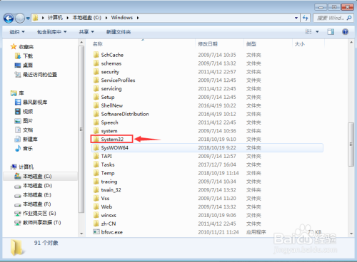 找到system32文件夹,双击打开它;