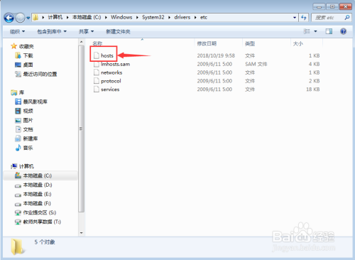 找到hosts文件,双击打开它;