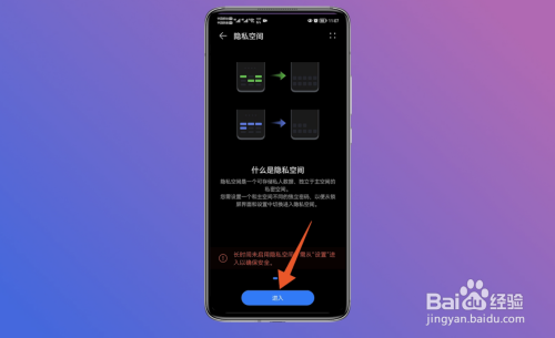 在跳转的隐私空间页面中,点击页面最下方的【进入】。
