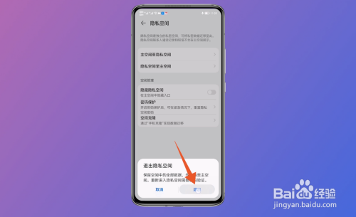 想要退出隐私空间,可以点击页面下柱舍方的【退出】,在弹出的窗口中再次点击【退出】即可。