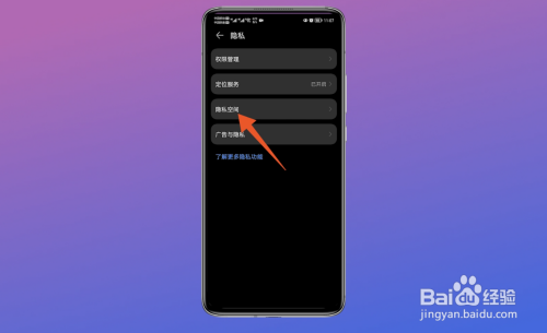 打开隐私设置页面后,晃腊讨选择并点击页面中的【隐私空间】选项。