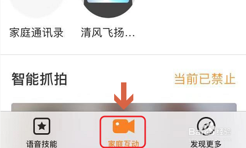 点击本家儿界面下方的“家庭互动”,然后会在对应页面的最上面看到一项“视频通话”,我们只需将开关滑动到这一侧,家中的音箱就会主动开启,下图就是视频及时监控诉画面,我们还可以录制或者截屏呢;