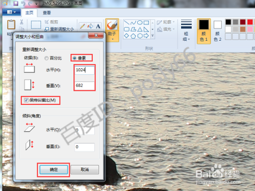 在弹出的的页面中勾选“像素”,并勾选“连结纵横比”,再将图片的程度宽度调解为1024(按照本身的需求举行修改),点击“确定”。