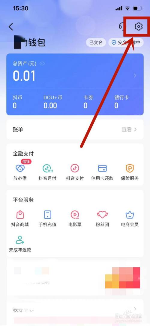 进入我的钱包页面,点击右上角设置图标。