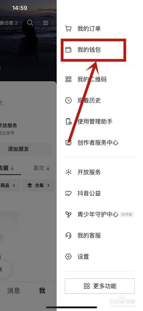 在右侧睁开的窗口中点击“我的钱包”。