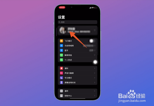 进入苹果手机体系设置后,在页面中,点击左上方位置的【头像】。