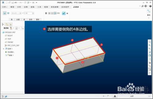 选择需要倒角的4条边线。