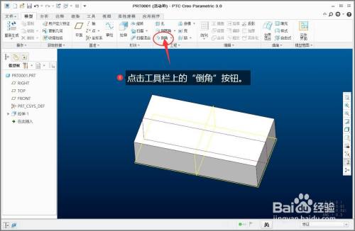 点击东西栏上的“倒角”按钮。