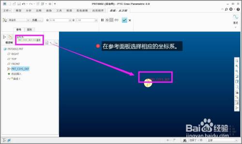 在参考面板选择响应的坐标系。