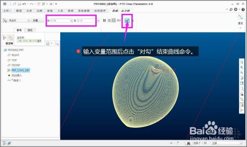 输入变量规模后点击“对勾”竣事曲线号令。