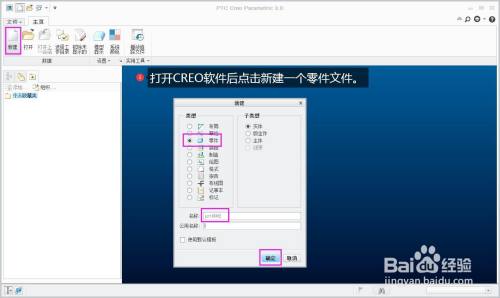 打开CREO软件后点击新建一个零件文件。