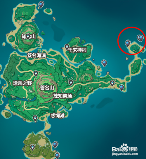 第五步.海祇岛——朦云神社左侧海岸线和右侧传送点。