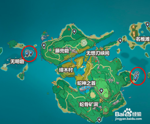 第二步.鸣神岛——绀田村左上角、神里屋敷南部海岸线和荒海海边。
