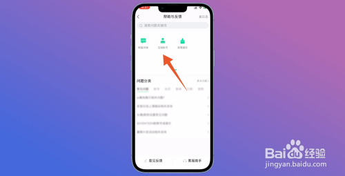切换到帮忙与反馈的页面后,找到上方的功效选项,标的目的右滑动,点击刊出帐号。