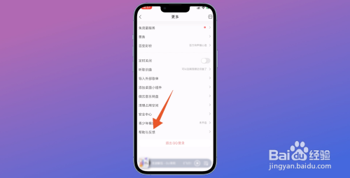 在更多的页面中,滑动屏幕到最底部,点击帮忙与反馈。
