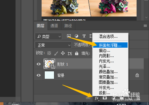 3. 在文档中绘制出椭八随圆形耕披付边框,点击图层面板下方的添加图层样式FX按钮,选斜面和浮激绵雕。