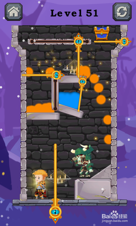 点击拔失宝箱左侧的竖标的目的拉针,如图。少年获得宝箱,这样就过关了。