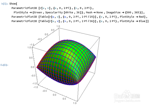 首先,给出一个曲面的参数方程,并绘制曲面: