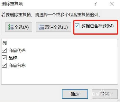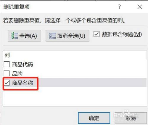 我们因此excel的商品名称列查找反复值的,只连结商品名称列勾选,取消了别的2个。
