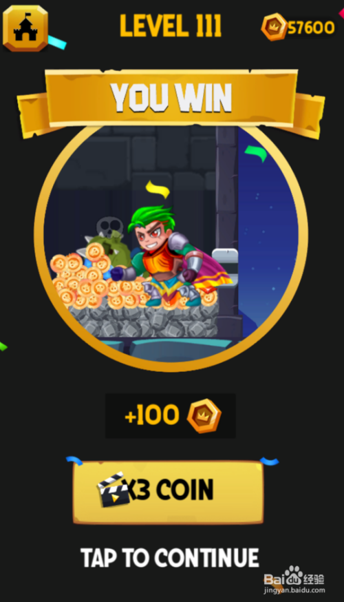少年景功获得宝藏,弹出YOU WIN通关动画,截婶如图,这样就过关了。