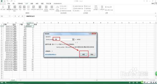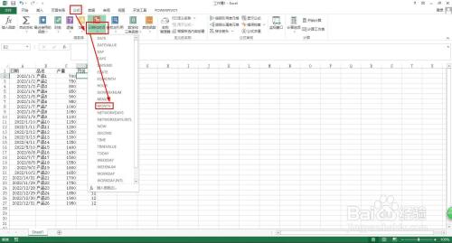 选择D2单位格——公式——日期和时间——选择MONTH函数。