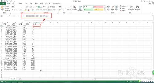 A列是出产日期——B列和C列是品名和产量——D列要提取A列的月份,E列换算当作季度。