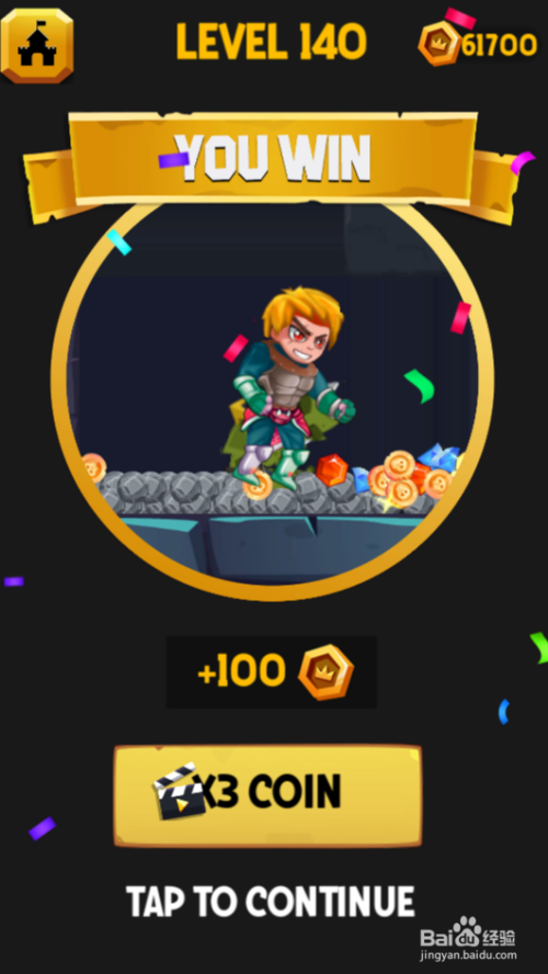 金发少年顺遂获得宝藏,弹出YOU WIN的通关画面,如图,这样就过关了。