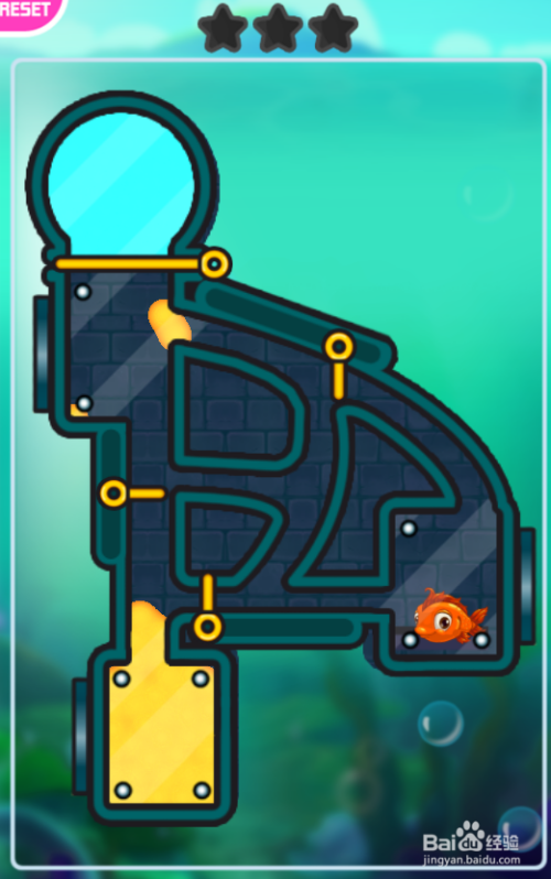 这个关卡内里有四个拉针,紫色章鱼在左侧下端,环境如图。