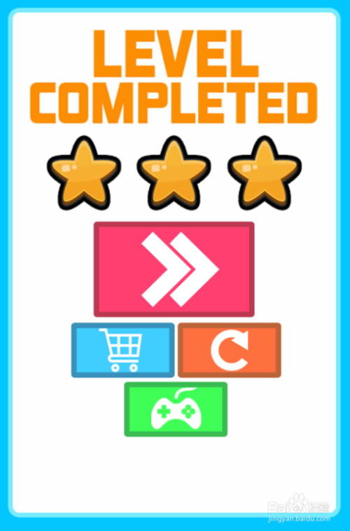小红鱼顺遂获救,弹出LEVEL COMPLETED的画面,如图。这样就过关了。