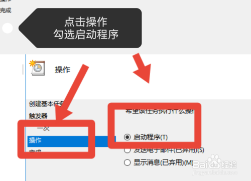 点击操作,在右侧菜单中勾选启动程序。