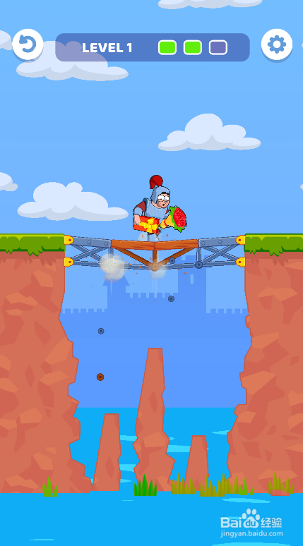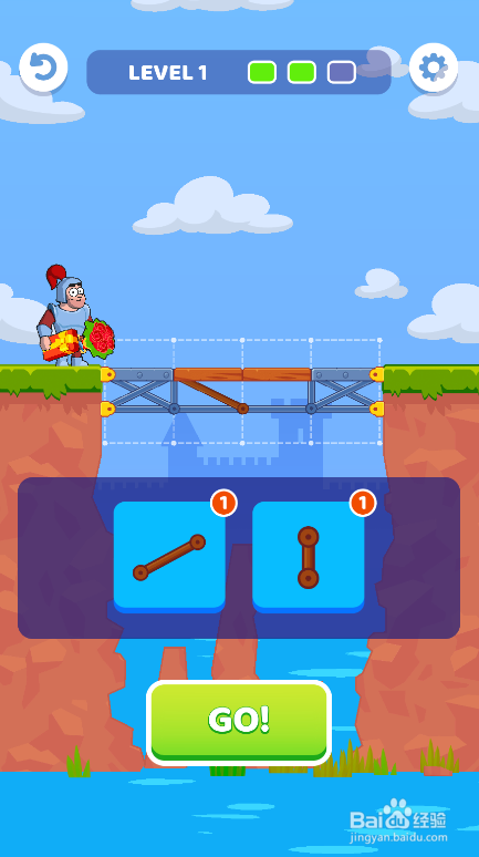 点击底部的GO!按钮,勇士顺遂过桥,如图。这座桥就经由过程了。