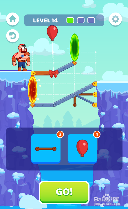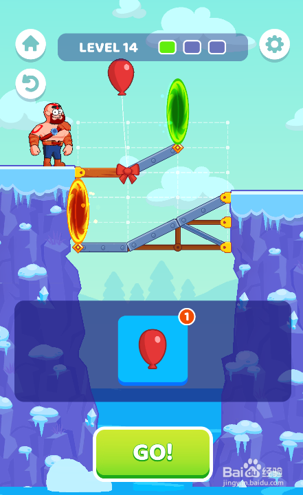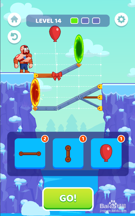 这一关利用的物件比力多,需要利用一个横标的目的木板、三个横标的目的毗连件、一个竖标的目的毗连件与两个气球对桥梁举行修复加固,环境如图。