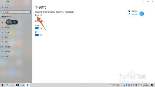 进入飞行模式页面后,将飞行模式的按钮封闭即可。