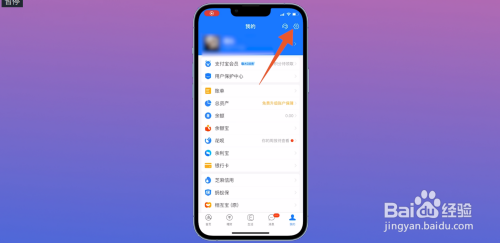 进入支付宝我的页面后,点击打开页面右上角的设置图标。