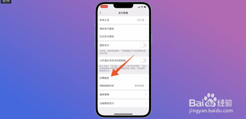 在跳转的页面中点击右上角的三点,打开支付办理页面后点击扣用度办事。