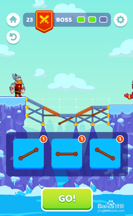 点击按下下侧的GO!按钮,勇士乐成过桥,如图。这样就过关了。