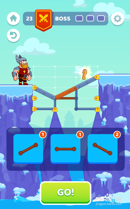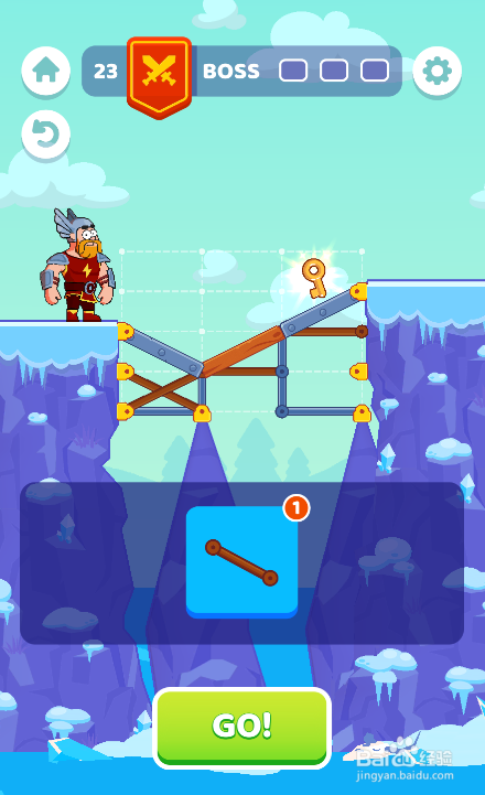 点击按下下侧的GO!按钮,勇士乐成过桥,如图。这样就过关了。
