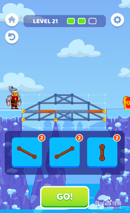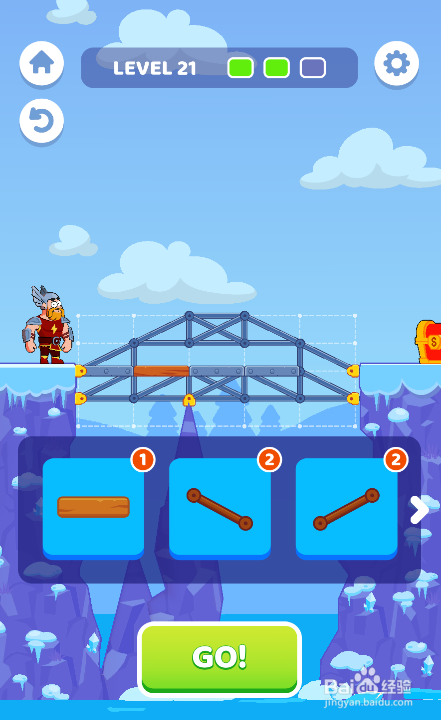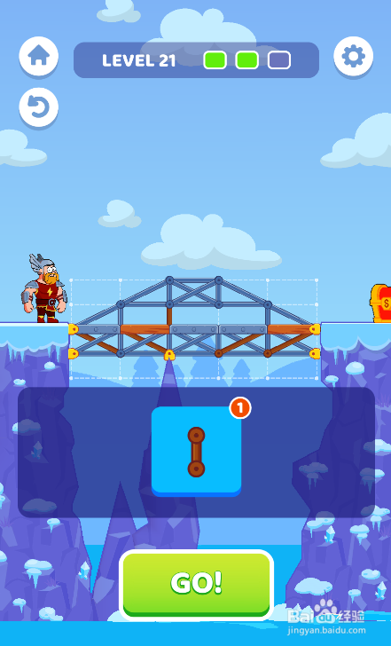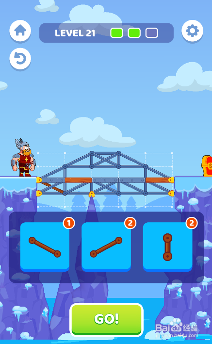 点击按下下侧的GO!按钮,勇士乐成过桥,如图。这样就过关了。