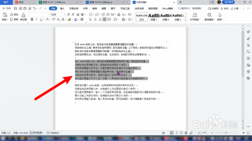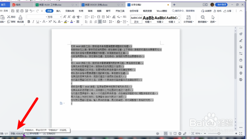 把需要查看字数的word文档打开,拖动鼠标全选文档【所有内容】。