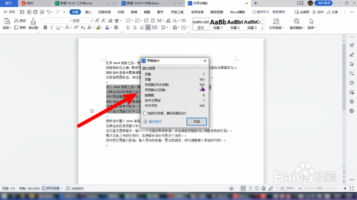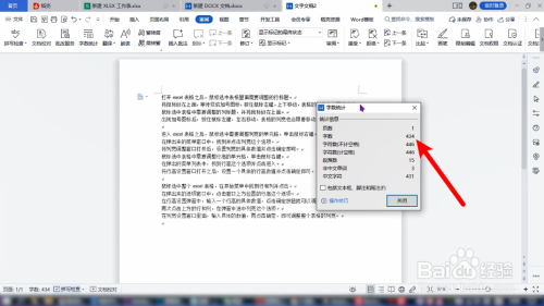 鼠标单击字数,将字数统计窗口调出来,这样就可以查看段落的【具体统计信息】。