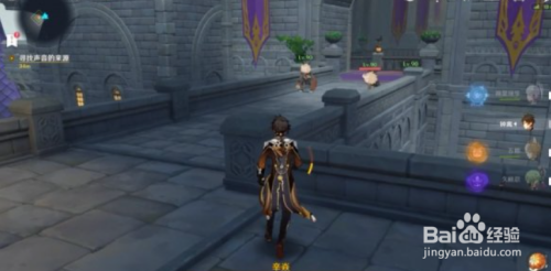 之后顺着楼梯往上爬回到平台,然后按照使命指引继续往前走,在楼梯下方发明装配,使用装配完当作弥补继续进步