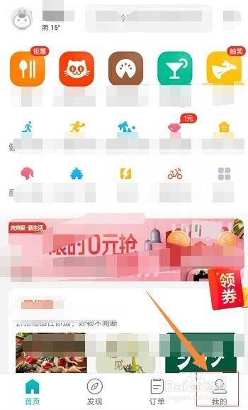 然后,进入美团的本家儿页,能看到各类各样的美食,景点等等,我们找到右下角的:“我的”点击进入小我私家本家儿页;