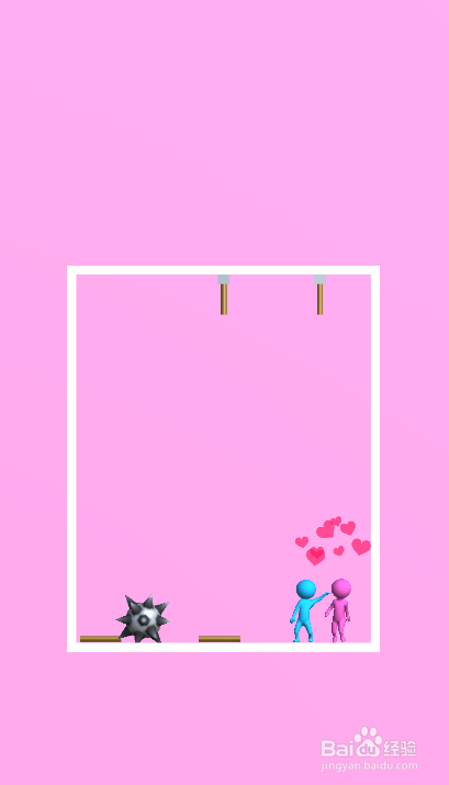 点击划断了蓝色人上侧的绳索,如图。