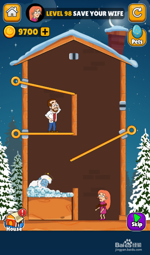 这一关史姑娘师长教师的使命是解救底部被困的妻子,内里有五个插销,环境如图。