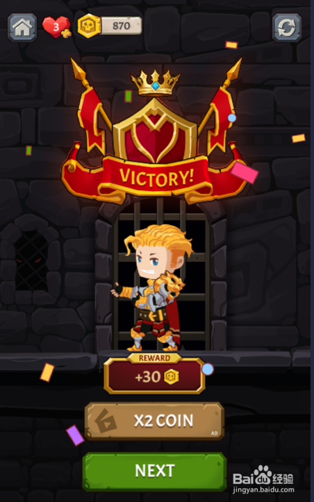 金发少年景功拿到宝藏,弹出了通关画面,如图。这样就过关了。