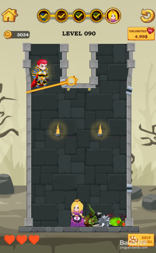 这一关内里有三个插销,公本家儿在底部,绿虫在右侧顶部,环境如图。