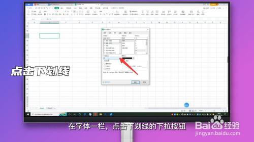 在字体一栏,点击下划线的下拉按钮。