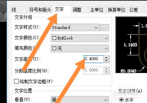 在文字中,输入文字高度,点击确定。